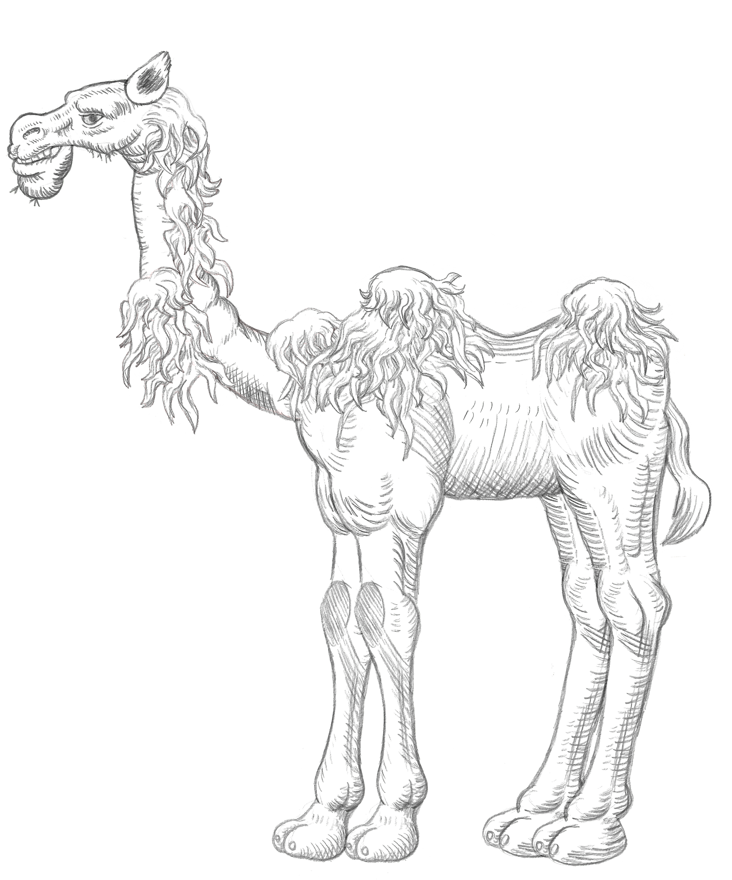 Os cenários de Pippo, a Pulga foram quase todos eles feitos com uma ilustração (à direita) feita em carvão, esta inspirada nas ilustrações científicas do Renascimento, nomeadamente no Historia animalium, do biólogo suíço Conrad Gessner. Cada parte do corpo foi desenhada à parte, digitalizada e montada para dar forma ao animal, como também os cenários do filme (em baixo), utilizando os tufos de pêlo do camelo como arbustos e os seus músculos como montes.